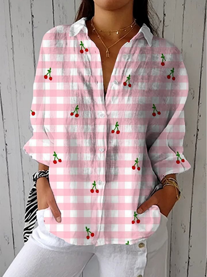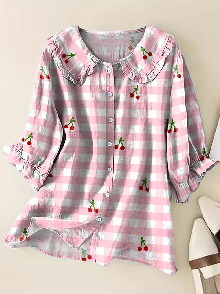 Lovely Summer Cherry And Plaid Pattern Printed Women's Dress