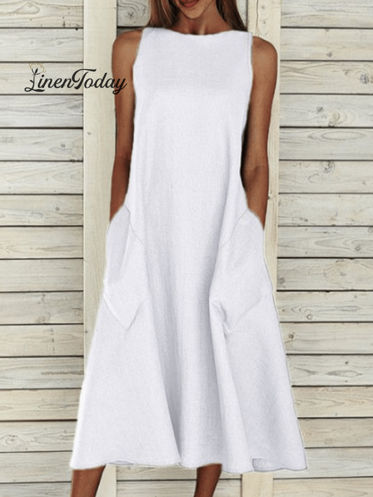 Women's Elegant Solid Color Cotton Dress