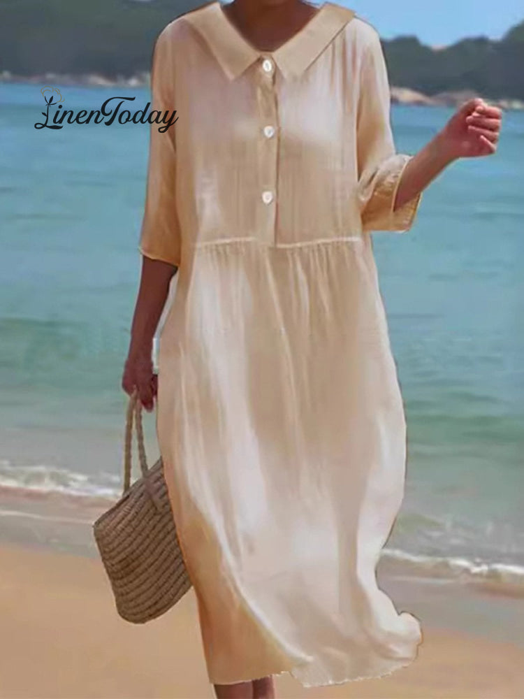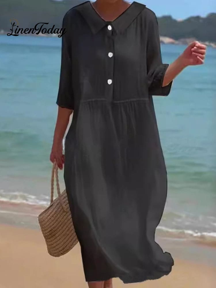 Women's Solid Color Cotton And Linen Doll Collar Dress