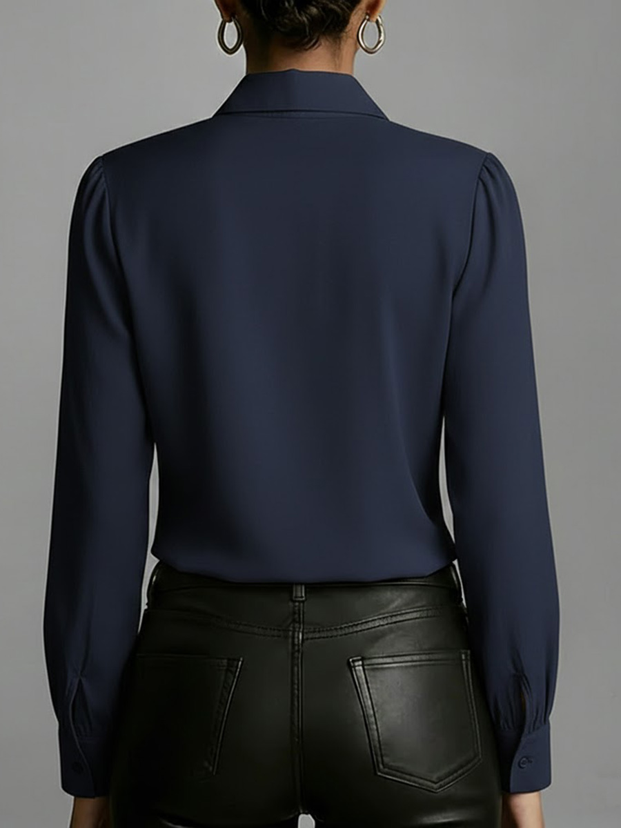 Women's Solid Color Lapel Ruffle Long-sleeved Casual Loose Cotton Shirt